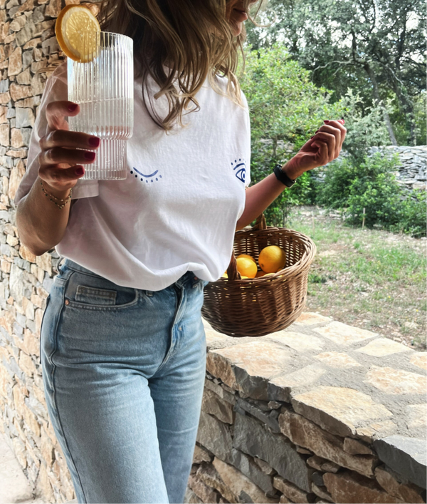 - Col rond- Coupe oversize- couleur BLEU- 100% Coton