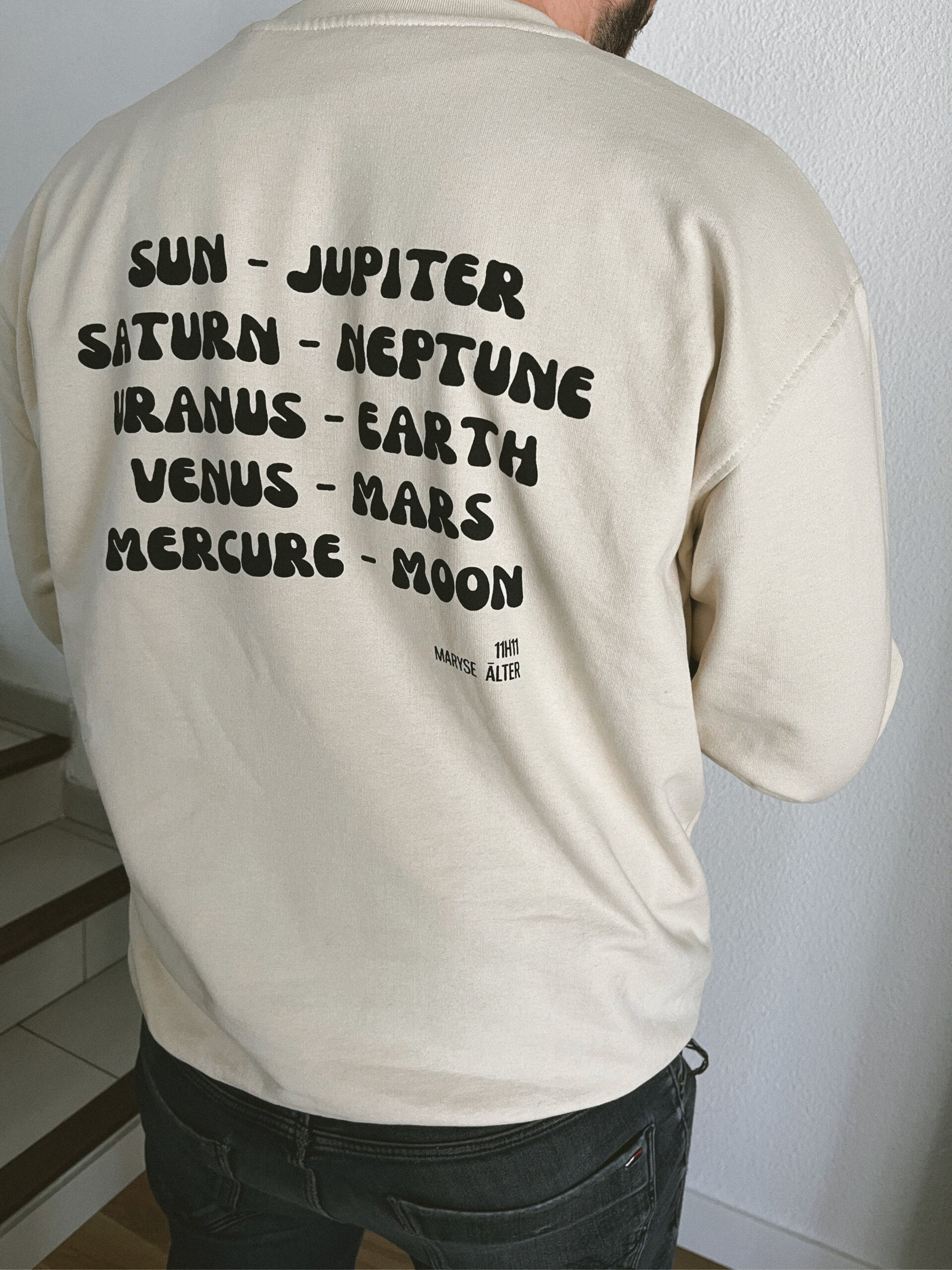 Le sweat Planètes rassemble l'astrologie et les planètes. La particularité, c'est que vous pouvez choisir votre signe astrologique grâce au pin's qui se trouve à l'avant du sweat